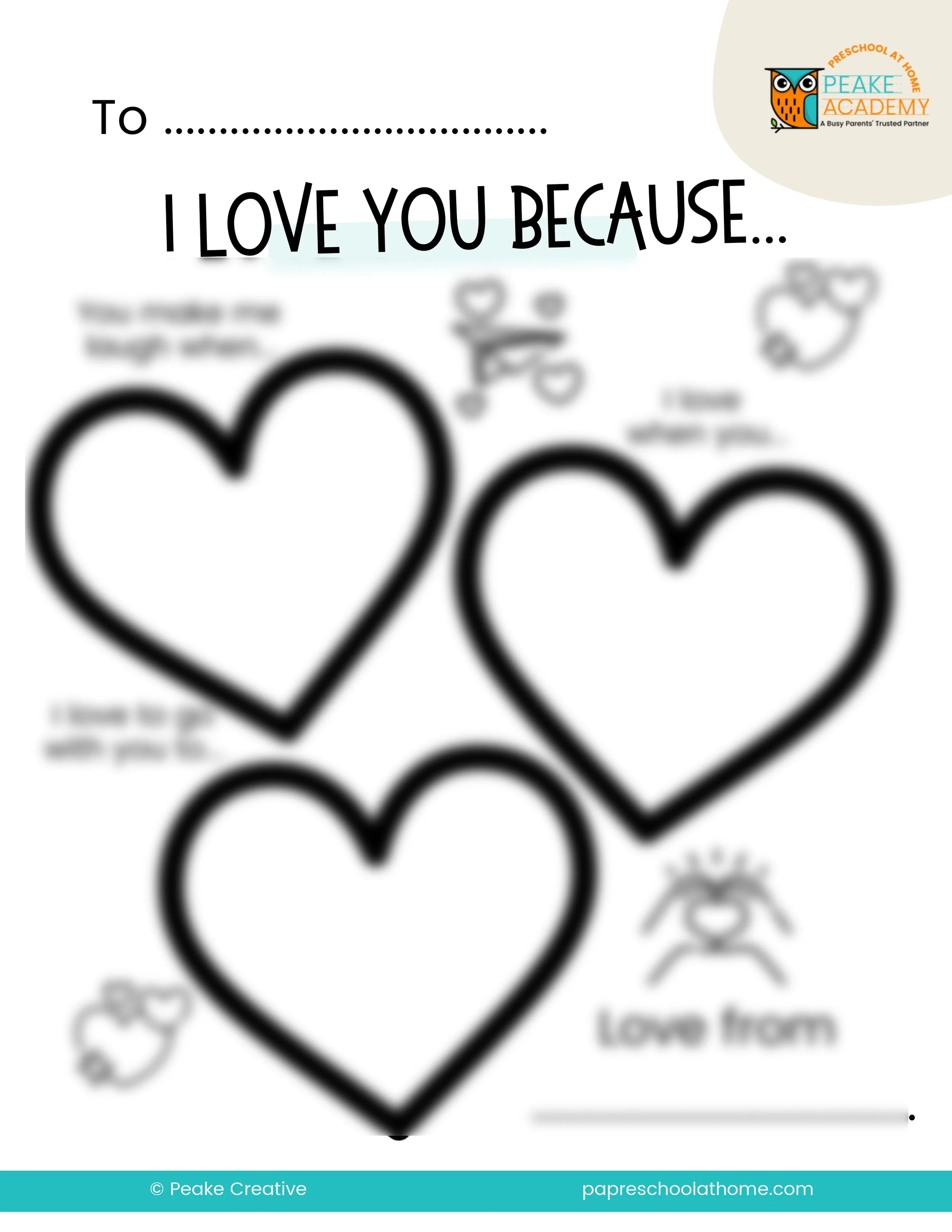 Fold a piece of paper in half. On one side, your child draws a portrait of their special person. On the other, they dictate (or write) a few reasons they love them. Tip: Prompts like “I love when you…” or “You’re the best at…” help get the thoughts flowing!