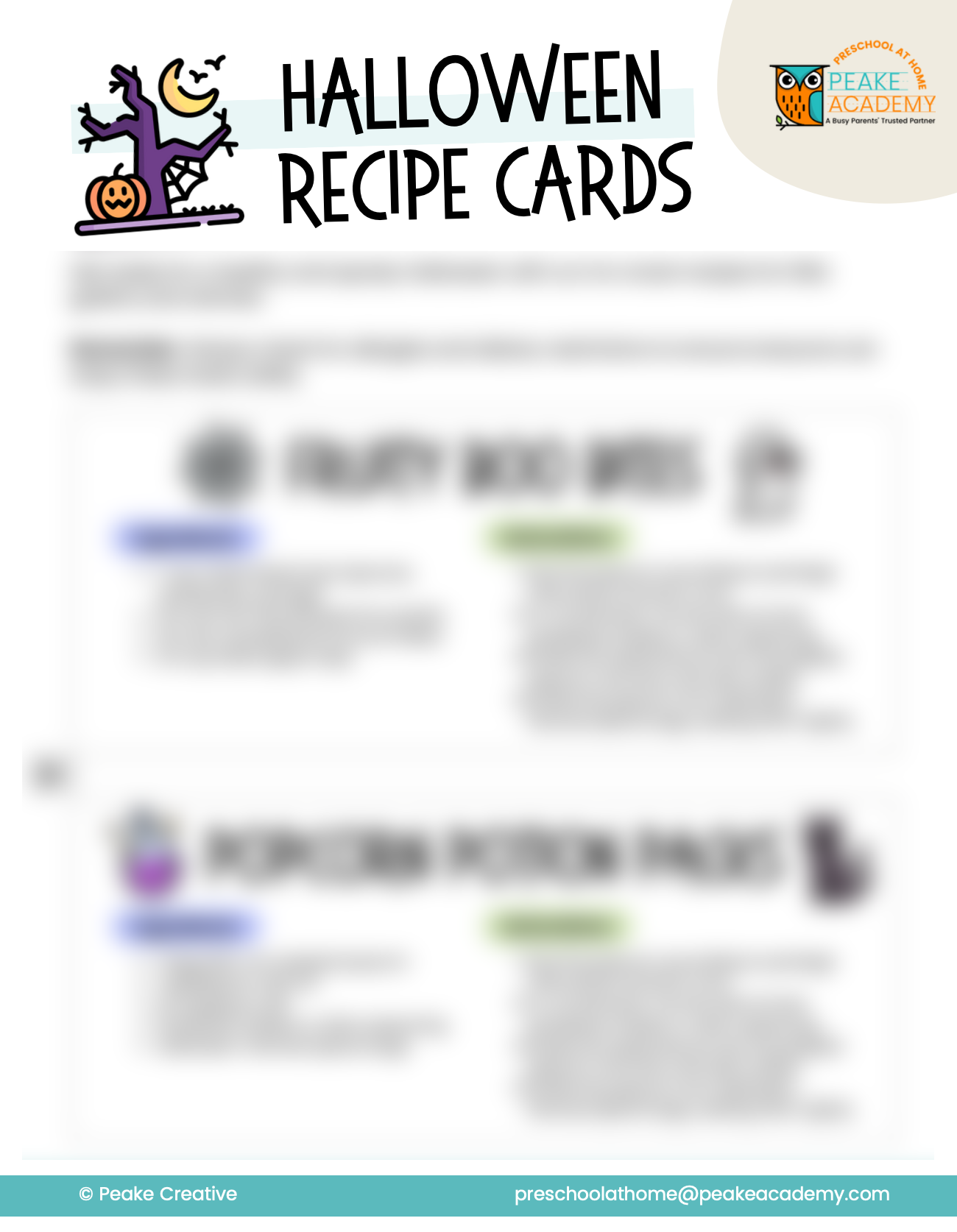 Read the full party plan here and download FREE Halloween Recipe Cards, fun snack recipes for little goblins and witches!